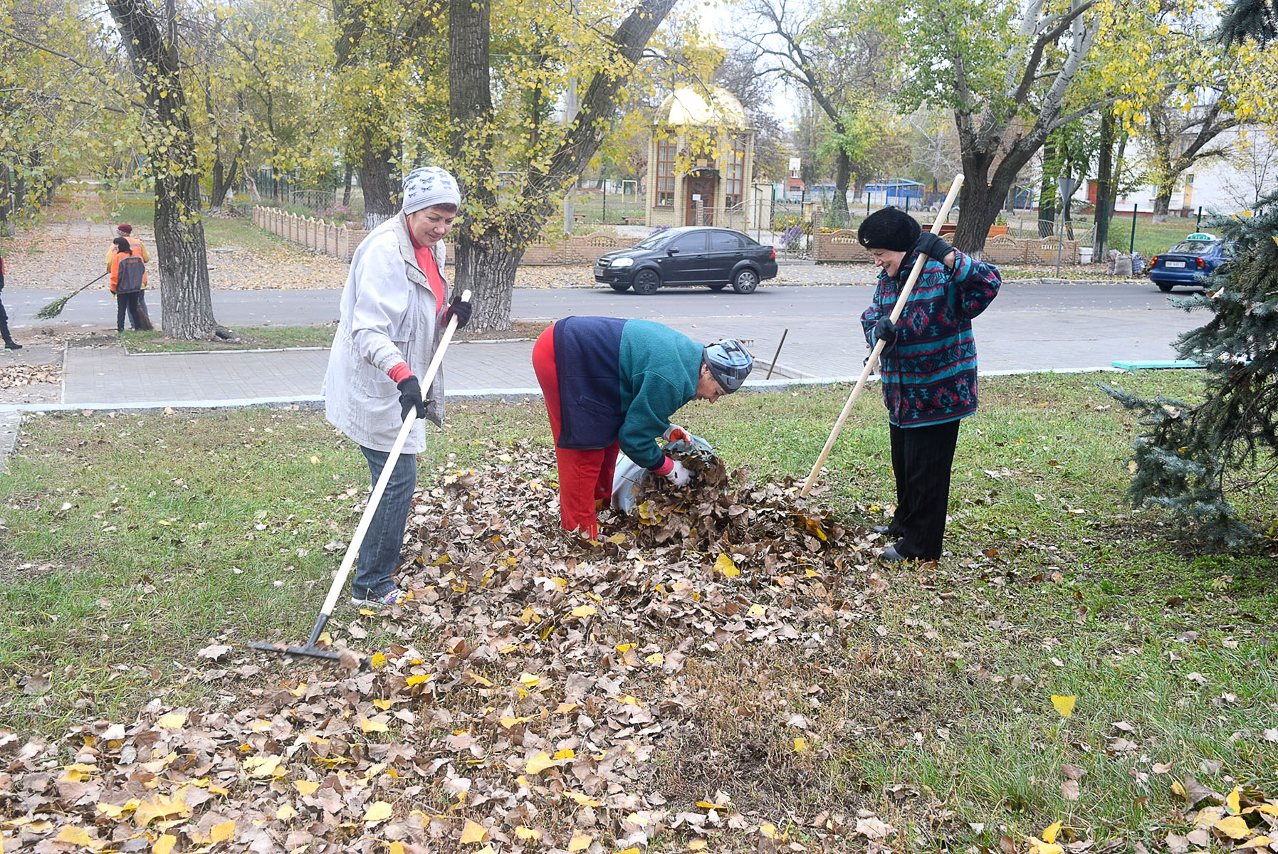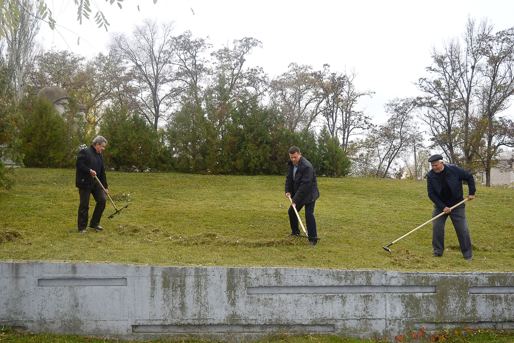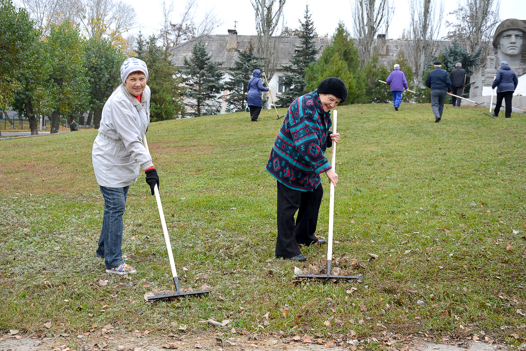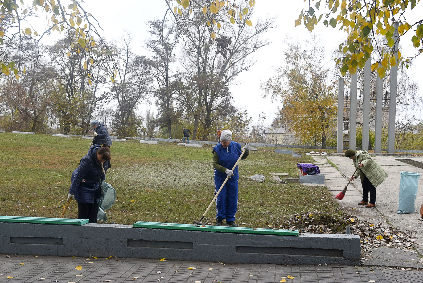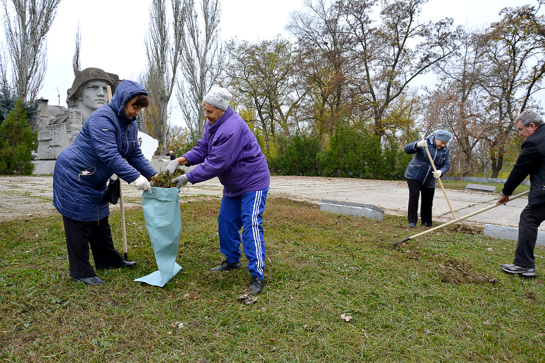Отже, 25 жовтня з 10-ї години ранку ветерани, озброївшись граблями, мітлами та мішками для збирання опалого листя і сміття, навели належний порядок біля Меморіалу Слави, братської могили та на навколишній території. Їм у цьому активно допомагали працівники комунальних підприємств Сєвєродонецької міської ради, яких за дорученням Ігоря Буткова було залучено для підтримки ініціативи ветеранської організації.