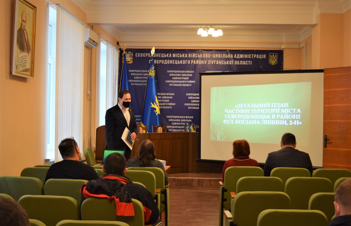 10 лютого в залі засідань Сєвєродонецької міської військово-цивільна адміністрації під головуванням начальника управління землеустрою, містобудування та архітектури Сєвєродонецької міської ВЦА Тараса Куцого відбулись громадські слухання з обговорення проєкту містобудівної документації «Детальний план частини території міста Сєвєродонецька в районі вул. Богдана Ліщини, 2-н».