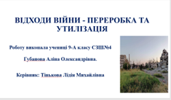 Аліна разом із науковим керівником Лідією Михайлівною Тіньковою аналізують в роботі використання відходів від руйнування в інших країнах, вивчають їх досвід та пропонують використовувати це для відбудови Луганщини і Сєвєродонецька після деокупації.