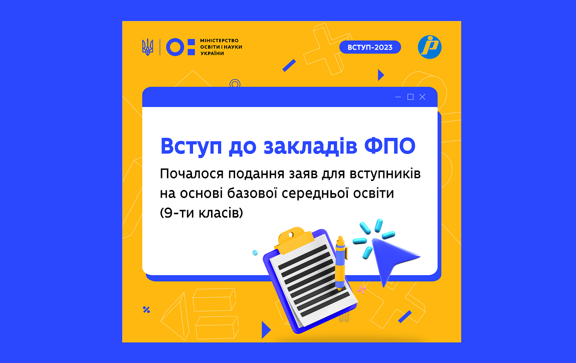 Відкрито подання заяв для вступників на основі базової середньої освіти (9-ти класів) до закладів ФПО