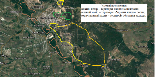 ДЛЯ МАЙБУТНЬОГО ВІДНОВЛЕННЯ ЛІСІВ державне підприємство «Сєвєродонецьке ЛМГ» звертається до всіх небайдужих жителів Луганщини за допомогою у зборі шишок сосни звичайної та кримської, жолудя дубу звичайного (місця збору насіння помічені на карті).