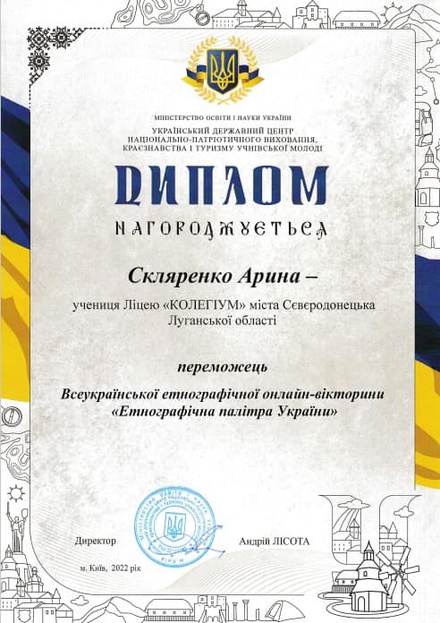 Скляренко Арина - ліцей "КОЛЕГІУМ";