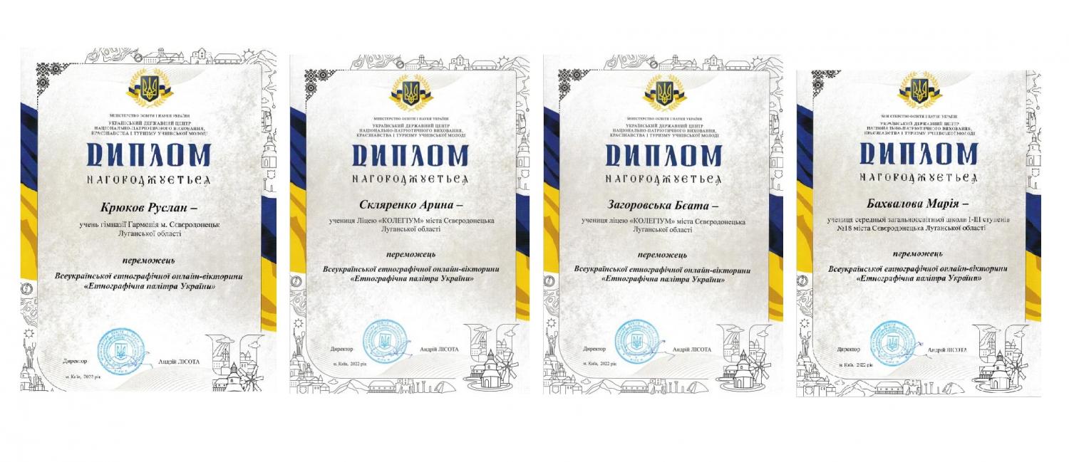 Вихованці Сєвєродонецького Центру туризму, краєзнавства та екскурсій учнівської молоді стали переможцями Всеукраїнської етнографічної онлайн-вікторини "Етнографічна палітра України"