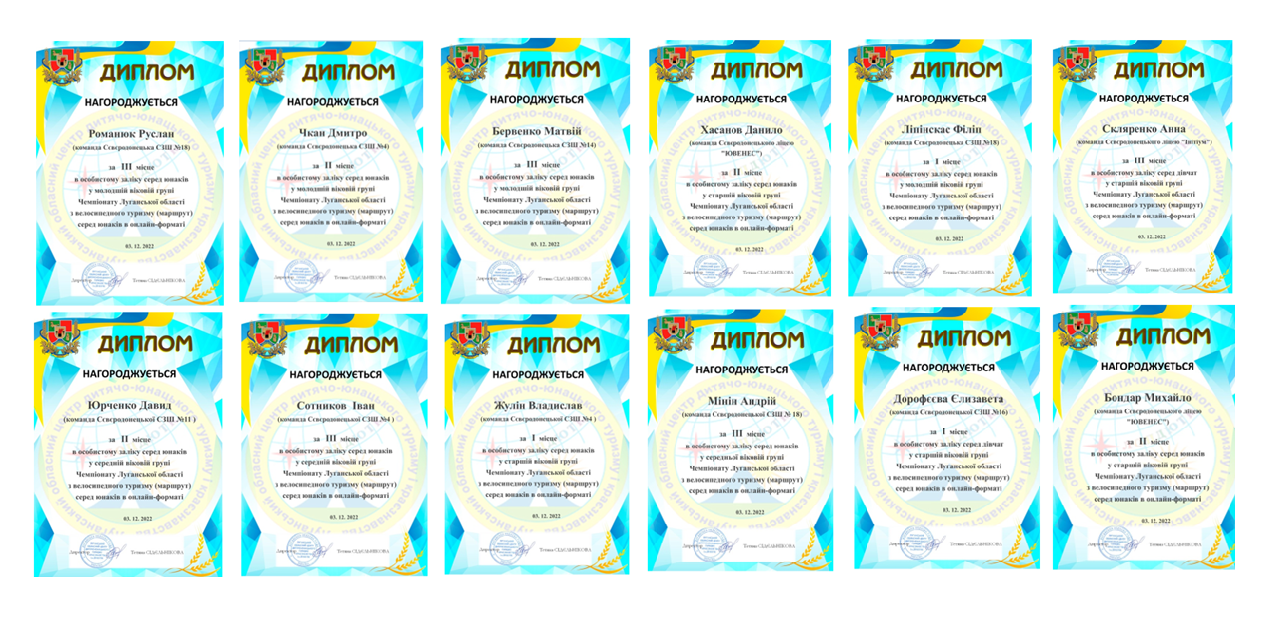 На початку грудня під егідою Луганського обласного центру дитячо-юнацького туризму і краєзнавства в онлайн- форматі відбувся Чемпіонат Луганської області (ІІ етап Чемпіонату України) з велосипедного туризму. Зокрема, до заходу долучились здобувачі освіти СЗШ №№ 4, 5, 10, 11, 14, 16, 18, Ліцею «Інітіум», Ліцею «ЮВЕНЕС», Ліцею № 1, Ліцею «КОЛЕГІУМ», Гімназії «Гармонія» Сєвєродонецької міської територіальної громади.