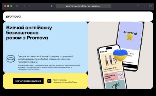 Платформа для вивчення мов Promova — один із перших продуктів, що став частиною національної програми популяризації англійської мови Future Perfect. Мета Promova — допомогти вивчати іноземні мови за допомогою застосунку та вебверсії продукту. Для українців відкрито безоплатний Premium-доступ до вивчення англійської мови: кожен і кожна можуть вивчати мову за допомогою курсів для самостійного опрацювання та досягати персональних цілей.