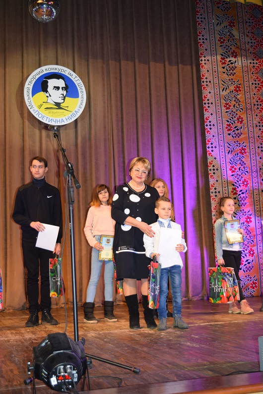 А о 14:00 годині в Палаці культури відбулося підведення підсумків й урочиста церемонія нагородження переможців ІХ міського творчого конкурсу «Поетична нива» ім. Т.Г. Шевченка. Зі сцени лунали вірші та уривки з поезій Великого Кобзаря, авторські вірші та поетичні твори покладені на музику.