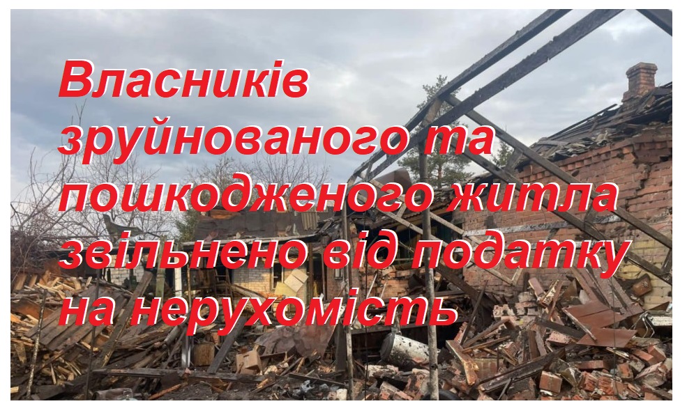Власників зруйнованого та пошкодженого житла звільнено від податку на нерухомість