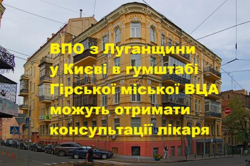 ВПО з Луганщини у Києві в гумштабі Гірської міської ВЦА можуть отримати консультації лікаря