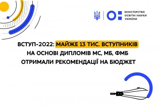 Вступ-2022: майже 13 тис. вступників на основі дипломів МС, МБ, ФМБ отримали рекомендації на бюджет