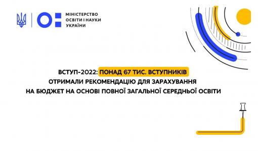 Вступ-2022: Понад 67 тис. вступників отримали рекомендацію для зарахування на бюджет на основі повної загальної середньої освіти