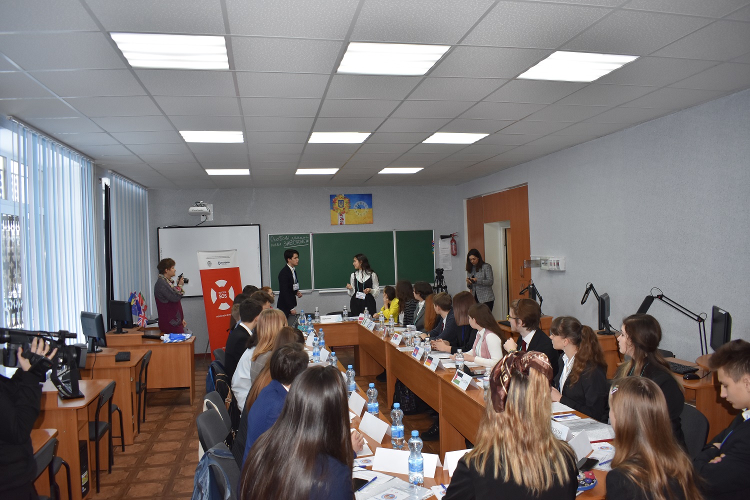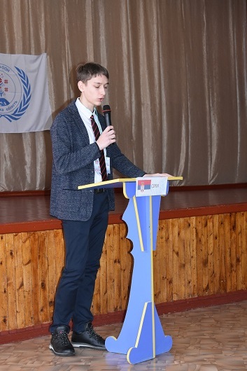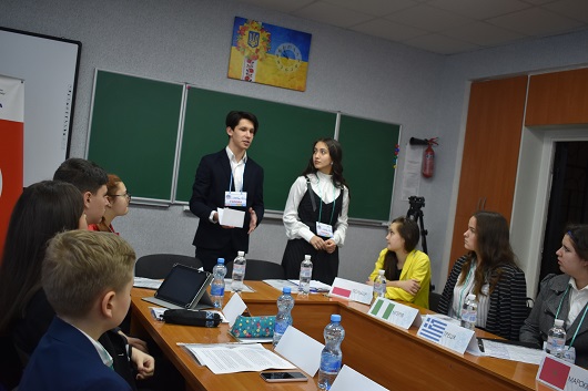 Вели засідання Генеральної Асамблеї ООН Голова Комітету проти катувань – учень фізико-математичного профілю - Іван Чухран та Співголова Комітету, учениця історичного Софія Оруджева.