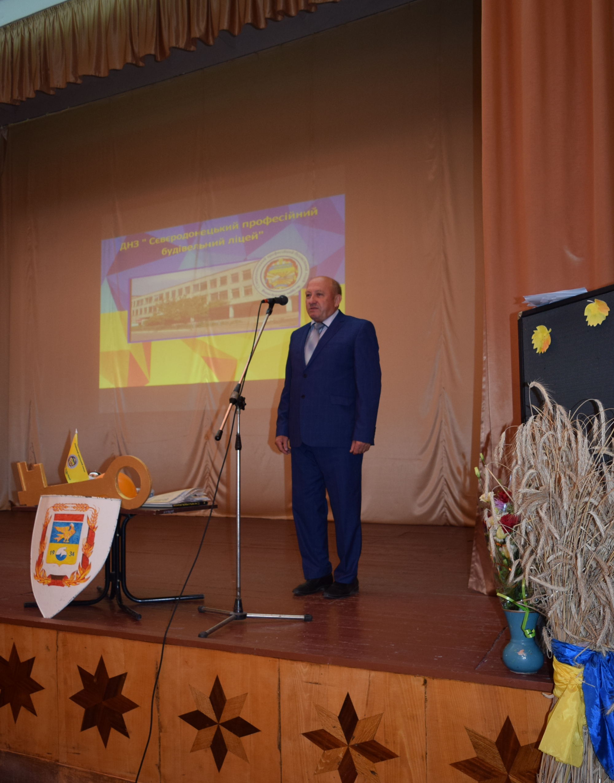 В.о. міського голови Вячеслав Ткачук 2 вересня відвідав ДНЗ «Сєвєродонецький професійний будівельний ліцей», де привітав учнів та педагогічний колектив з початком нового навчального року: «Професія будівельника надзвичайно потрібна для розвитку суспільства. Бог створив Землю, а все інше будівельники. Тому хочу подякувати директору та викладачам навчального закладу за те, що ви героїчно відстоюєте право закладу на існування та готуєте спеціалістів таких важливих спеціальностей».