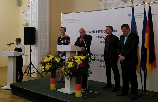 В.о. міського голови Вячеслав Ткачук у місті Дніпро зустрівся з Генеральним консулом Федеративної Республіки Німеччина доктором Штефаном Кайлем на його запрошення та послом Федеративної Республіки Німеччина Анкою Фельдгузен з приводу Дня Німецької єдності.