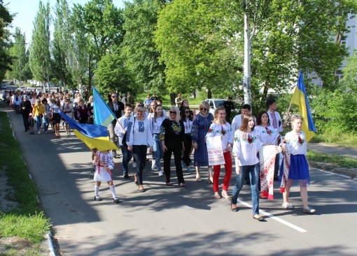 Усі бажаючи городяни, вбрані у вишиванки, пройшли від площі Миру до міського Палацу культури, де на учасників ходи чекав святковий концерт.