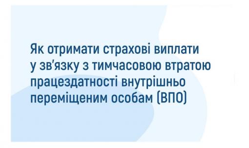 Внутрішні переселенці можуть отримати виплати у зв’язку з тимчасовою втратою працездатності за рахунок коштів Пенсійного фонду. Тобто, якщо відповідні страхові виплати не здійснює роботодавець, то ВПО можуть їх отримати від Пенсійного фонду.