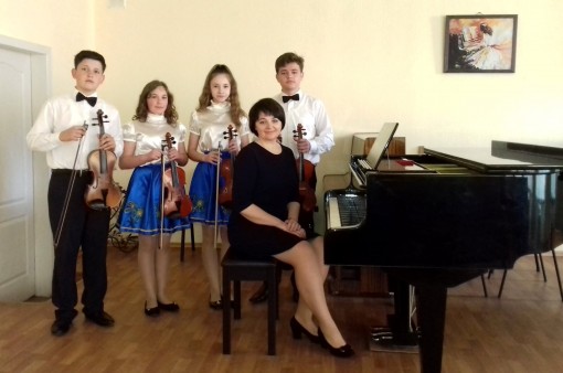 Ансамбль скрипачей «Фантазия» в составе Полины Калмыковой, Данила Гарбузюка, Владислава Гарбузюка и Виктории Коваленко стал лауреатом фестиваля-конкурса исполнителей на струнно-смычковых инструментах им. В.М. Панфило и областного смотра-конкурса ансамблей струнно-смычковых инструментов (преп. О.Л. Скуридина, конц. Е.Л. Кишко).