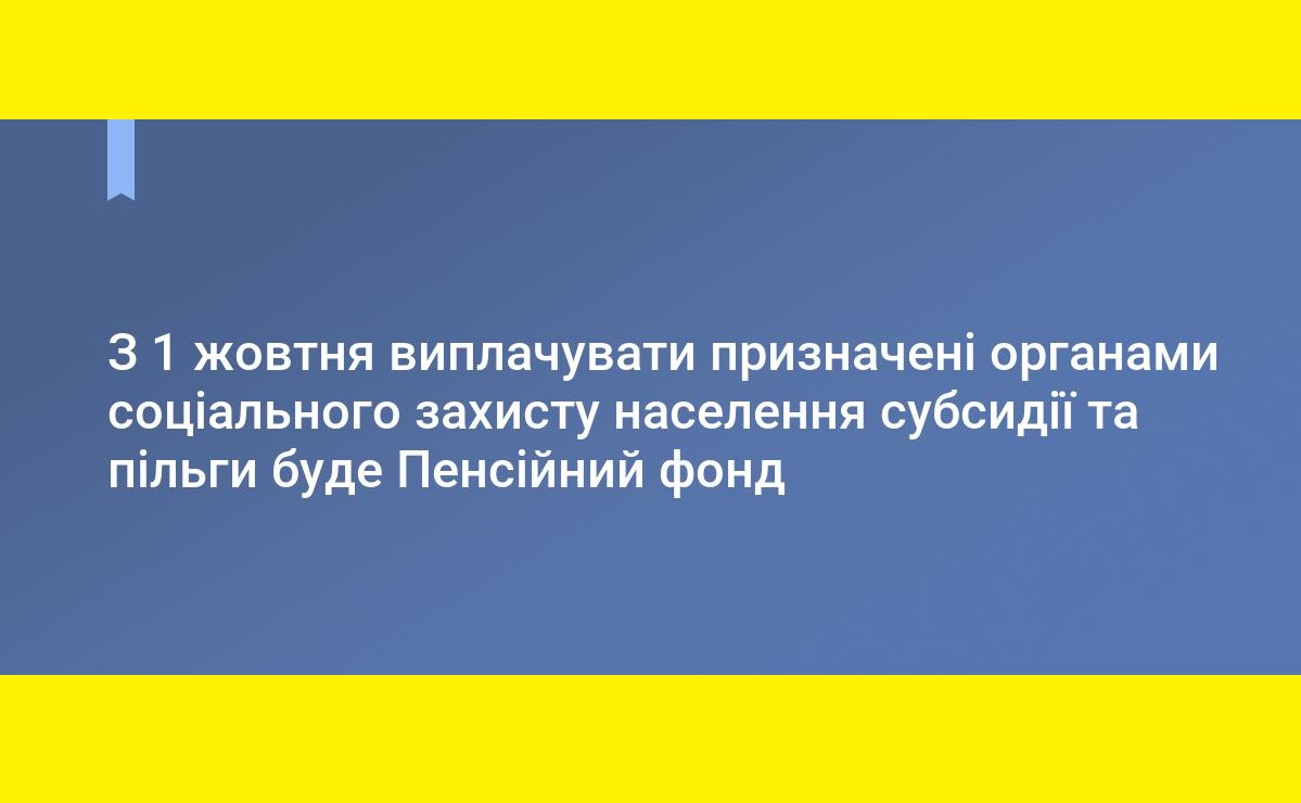 Постановою передбачено, що з 1 жовтня виплачувати призначені органами соціального захисту населення субсидії та пільги буде Пенсійний фонд України.