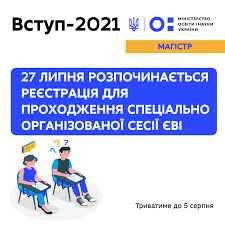 27 липня 2021 року розпочинається реєстрація для проходження спеціально організованої сесії єдиного вступного іспиту (ЄВІ). Вона триватиме до 5 серпня.