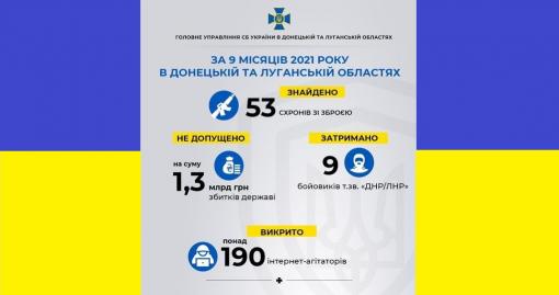 СБУ проводить системну роботу із запобігання та нейтралізації загроз державній безпеці на сході України. З початку року поблизу лінії розмежування затримано 9 бойовиків так званих «Л/ДНР». Зловмисники причетні до обстрілів позицій українських військових.