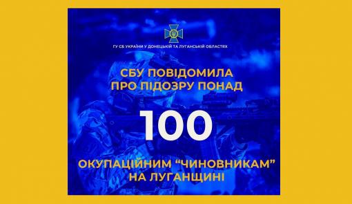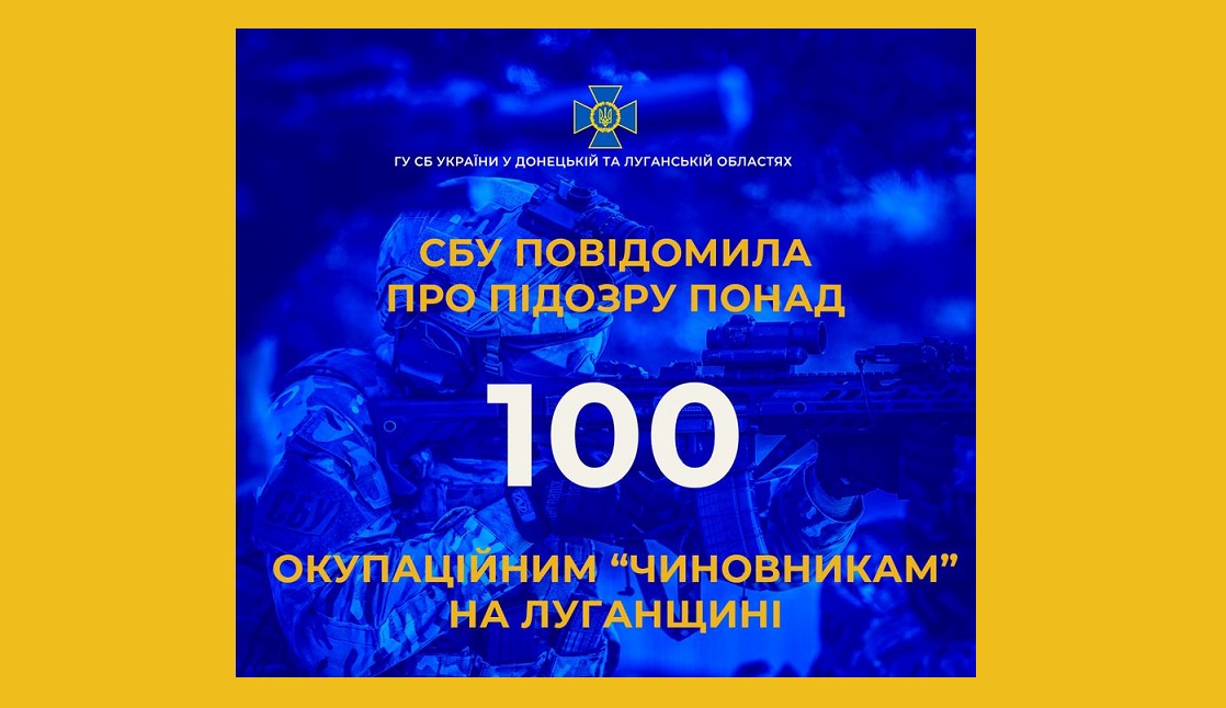 З початку широкомасштабного російського вторгнення Службою безпеки України повідомлено про підозру в колабораційній діяльності понад 100 окупаційним «чиновникам» з Луганщини.