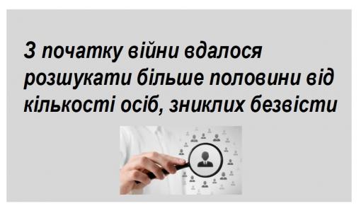 З початку війни вдалося розшукати більше половини від кількості осіб, зниклих безвісти
