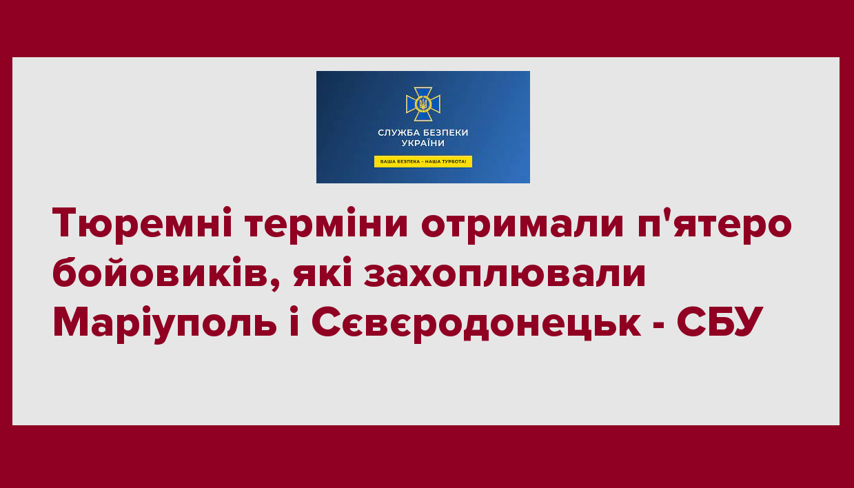 За матеріалами СБУ ще п'ятеро бойовиків «л/днр», які захоплювали Маріуполь і Сєвєродонецьк, проведуть від 10 до 13 років за ґратами
