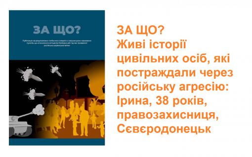 ЗА ЩО? Живі історії цивільних осіб, які постраждали через російську агресію: Ірина, 38 років, правозахисниця, Сєвєродонецьк