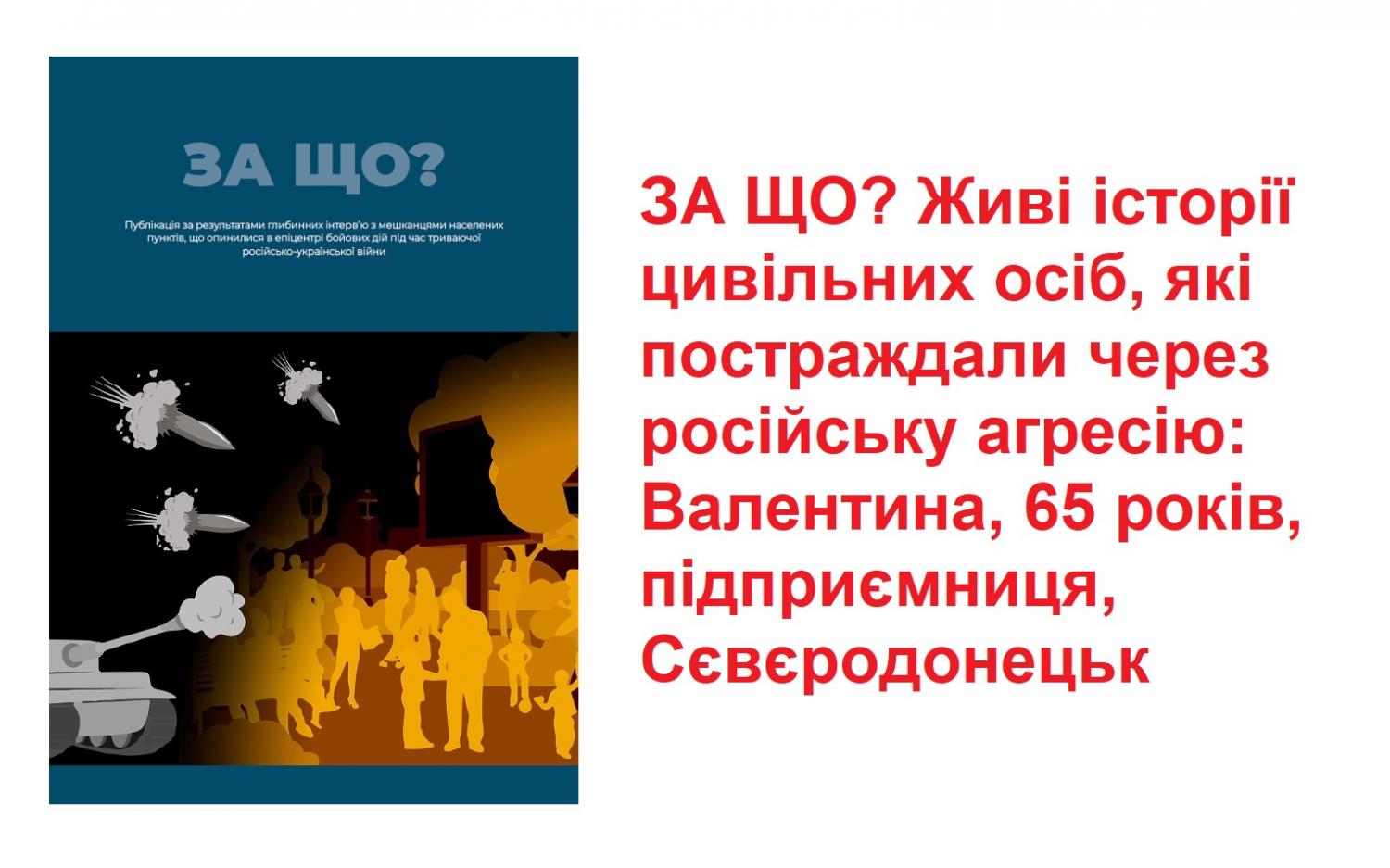ЗА ЩО? Живі історії цивільних осіб, які постраждали через російську агресію: Валентина, 65 років, підприємниця, Сєвєродонецьк