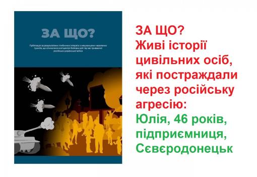 ЗА ЩО? Живі історії цивільних осіб, які постраждали через російську агресію: Юлія, 46 років, підприємниця, Сєвєродонецьк