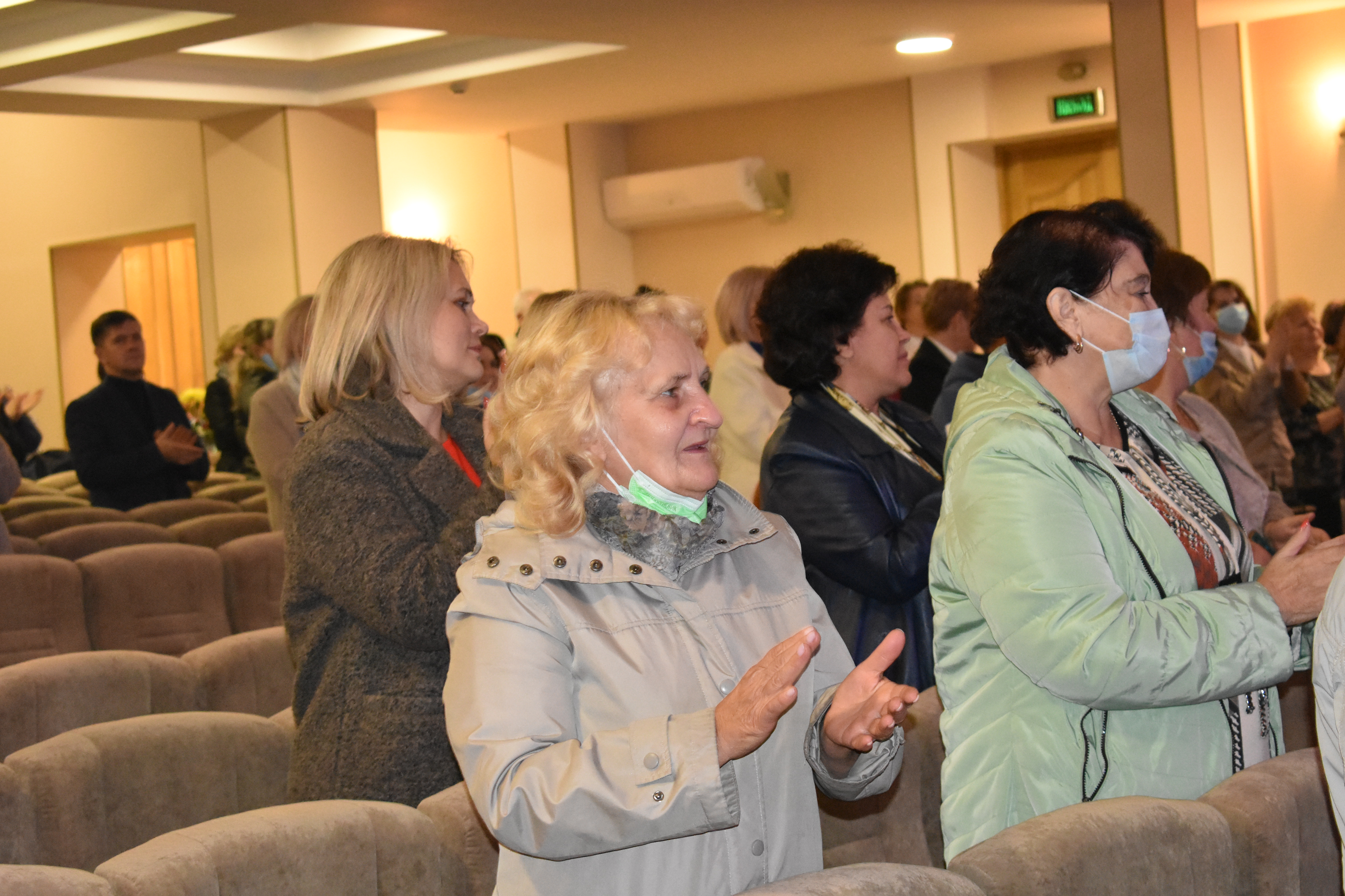 З великою пошаною Вчителеві стоячи вшановували оплесками ветеранів педагогічної праці.
