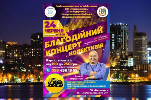 Напередодні Дня Конституції України, за ініціативи Благодійного фонду "Жити в мирі" та підтримки Сєвєродонецької міської військової адміністрації, 24 червня 2023 року в Палаці культури "Металург" міста Дніпра (проспект Петра Калнишевського, 27К) відбудеться Благодійний концерт колективів.