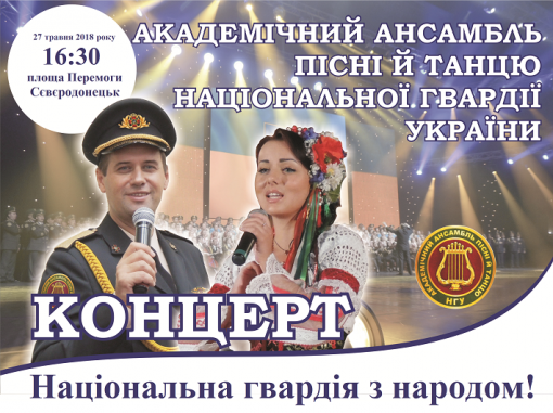 27 травня 2018 року о 16.30 на площі Перемоги у Сєвєродонецьку представить свою програму Академічний ансамбль пісні і танцю Національної гвардії України під гаслом: «Національна гвардія з народом».