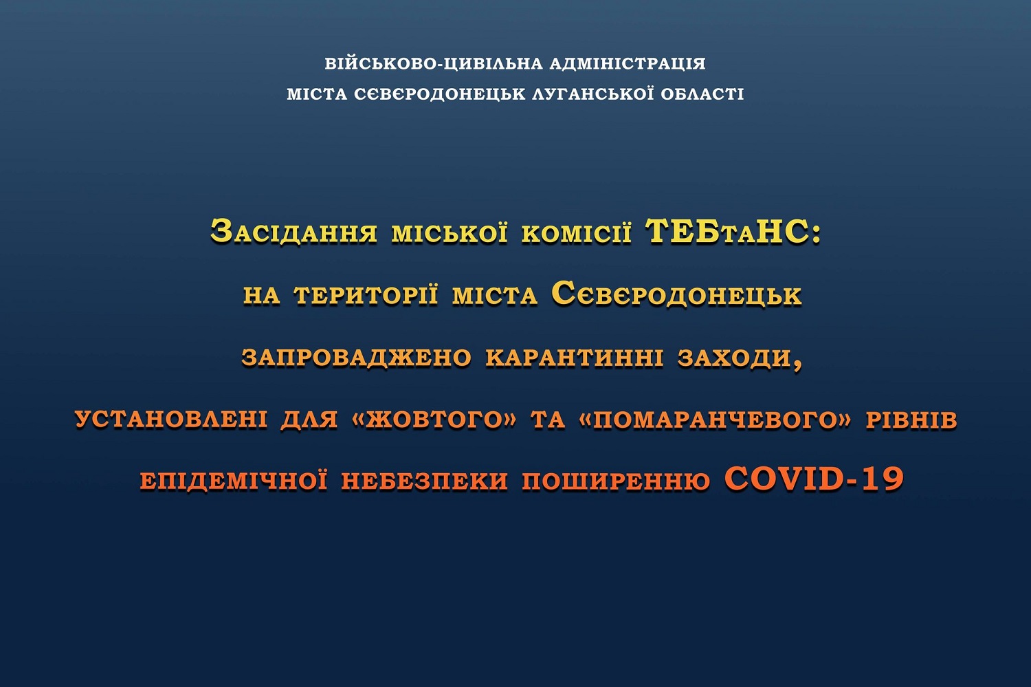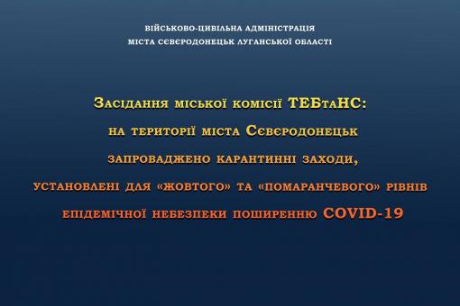 Засідання міської комісії ТЕБтаНС: на території міста Сєвєродонецьк запроваджено карантинні заходи, установлені для «жовтого» та «помаранчевого» рівнів епідемічної небезпеки поширенню COVID-19
