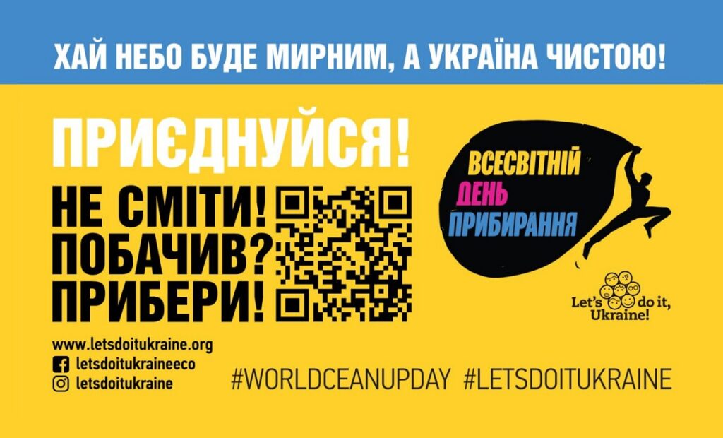 16 вересня 2023 року під гаслом «Хай небо буде мирним, а Україна чистою!» у 24 регіонах з дотриманням карантинних норм та обмежень воєнного часу, враховуючи норми безпеки та географічні особливості регіонів, Україна традиційно приєднається до Всесвітнього дня прибирання «World Cleanup Day» разом з 70 мільйонами учасників у 191 країні Світу.