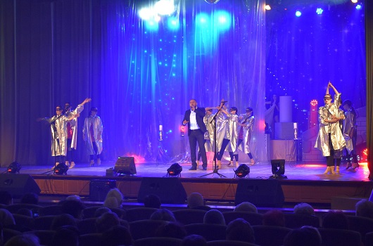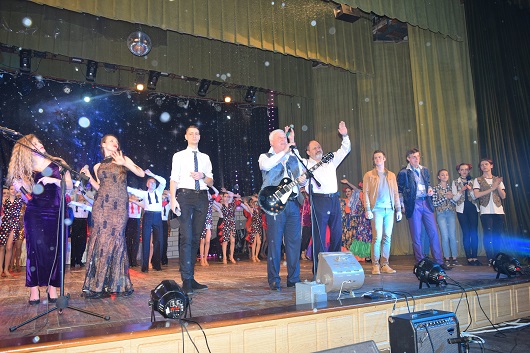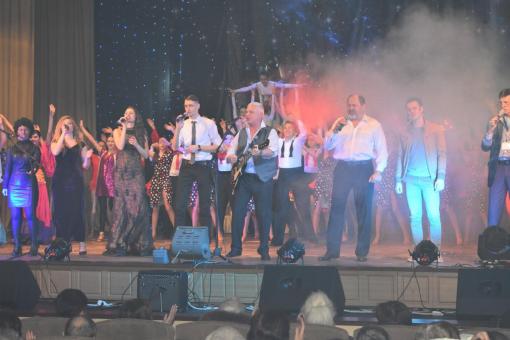 Після слів поздоровлень на всіх чекав приголомшливий сюрприз. Несподівано в.о. міського голови Вячеслав Ткачук повернувся на сцену… з гітарою. З перших акордів всі впізнали відому пісню «Мир не прост» (ВІА «Самоцветы»). Цю культову композицію разом з солістами мюзиклу виконували й всі присутні в залі.