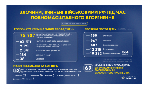Злочини, вчинені військовими рф під час повномасштабного вторгнення в Україну (станом на 10.05.2023)