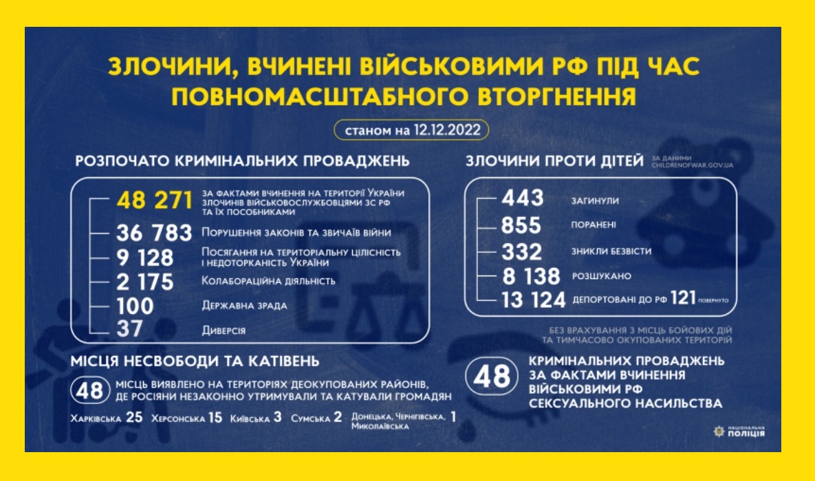 Злочини, вчинені військовими рф під час повномасштабного вторгнення в Україну, станом на 12.12.2022