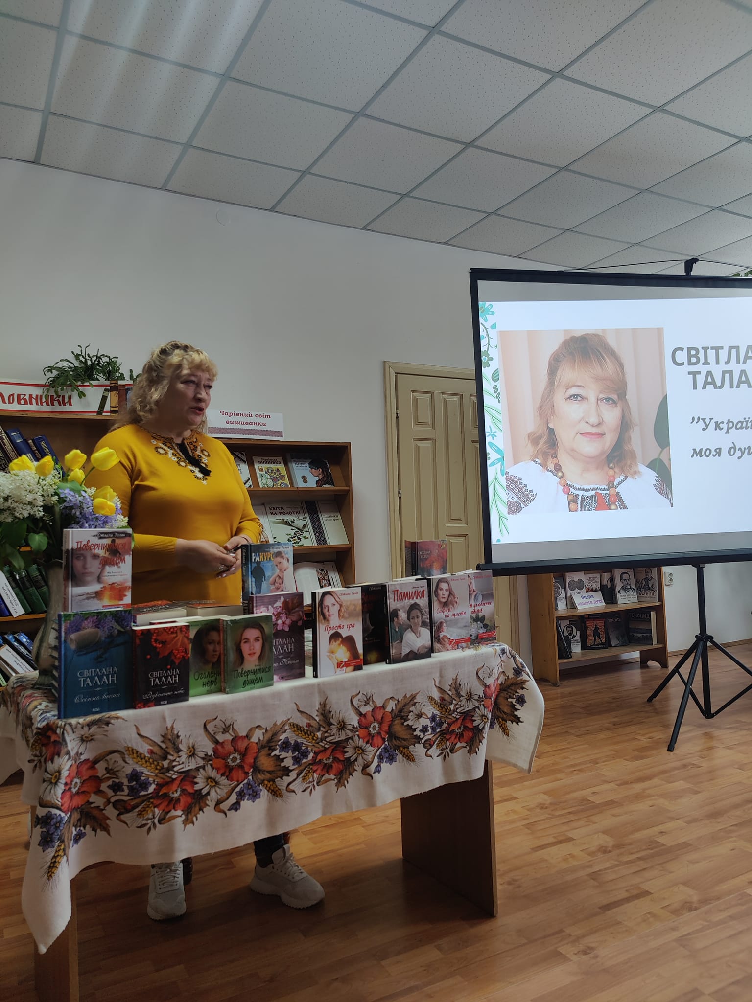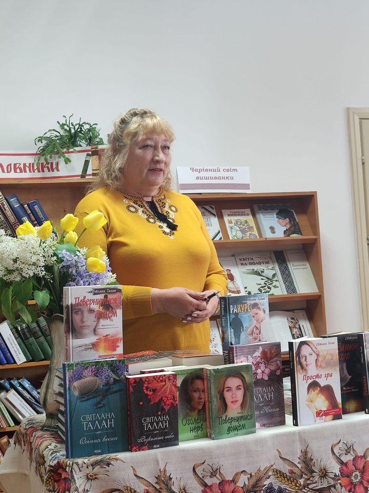 11 травня в Рогатинській центральній бібліотеці (Івано-Франківська область) відбулась презентація Золотої письменниці України Світлани Талан: "Рогатинській бібліотеці поТАЛАНило. Шанувальники творчості Світлани Олегівни, затамувавши подих, слухали розповіді авторки про кожну з написаних ''реальних історій''. До сліз розчулили слова письменниці про окупацію її рідного Сєверодонецька, зруйнований дім, складні будні вимушено переселених людей, спогади про українських воїнів, з якими письменниця товаришувала.