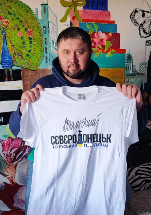 Якось, гортаючи стрічку новин, дизайнер побачив фото, на якому футболку тримає керівник Сєвєродонецької РВА Роман Власенко.