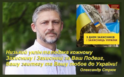 Звернення Олександра Стрюка з нагоди Дня захисників і захисниць України