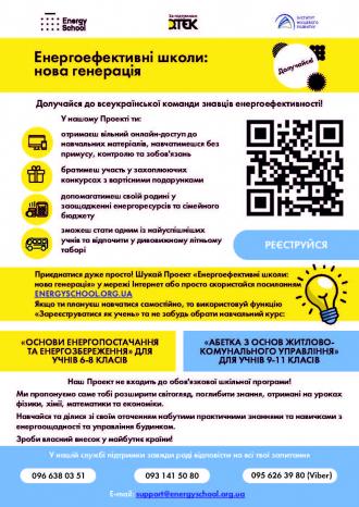 Запрошуємо навчальні заклади та учнів взяти участь у Проєкті «Енергоефективні школи: нова генерація»