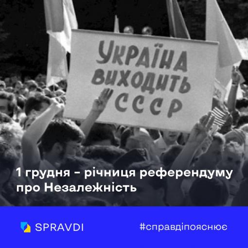 1 грудня 1991 року понад 90% українців підтримали Акт проголошення незалежності України на загальнонаціональному референдумі.