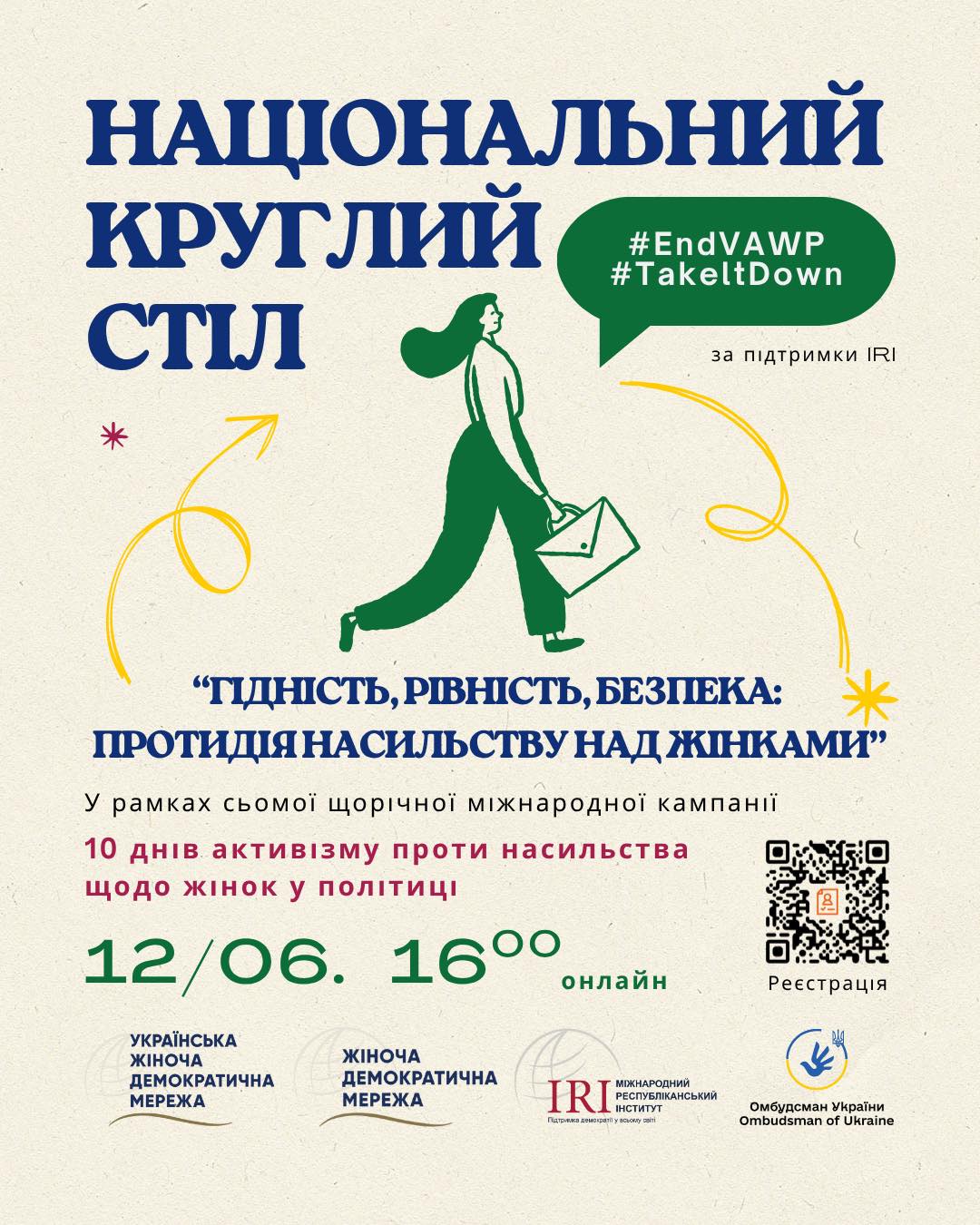 Всеукраїнська організація «Українська Жіноча Демократична Мережа», частина глобальної платформи Women's Democratic Network (Вашингтон, США), проводить серію регіональних онлайн круглих столів, присвячених протидії насильству над жінками, особливо в контексті політичної діяльності та з використанням цифрових технологій.