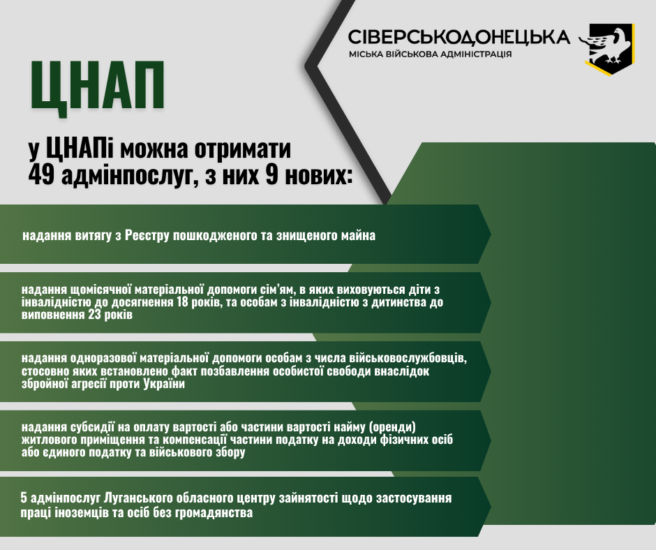 У ЦНАПі можна отримати 49 адміністративні послуги, з них 9 нових. Серед адмінпослуг: