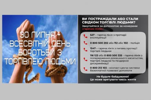 - 1547 — гаряча лінія з питань протидії торгівлі людьми.