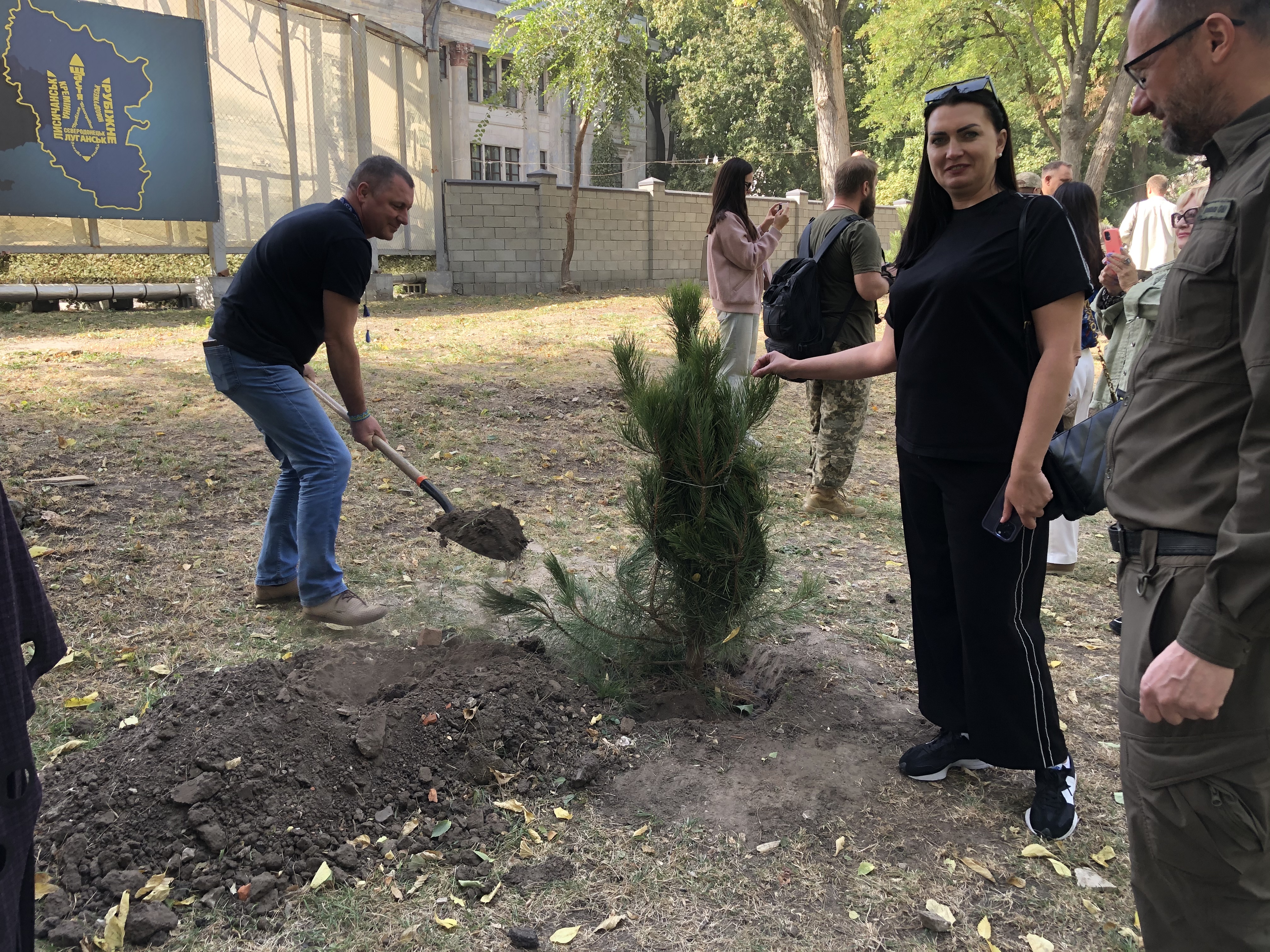 Перший заступник начальника Сєвєродонецької міської військової адміністрації Тетяна Верховська та заступники начальника Сєвєродонецької міської військової адміністрації Олег Кузьмінов і Юлія Шорохова теж доєднались до висаджування кримської сосни.