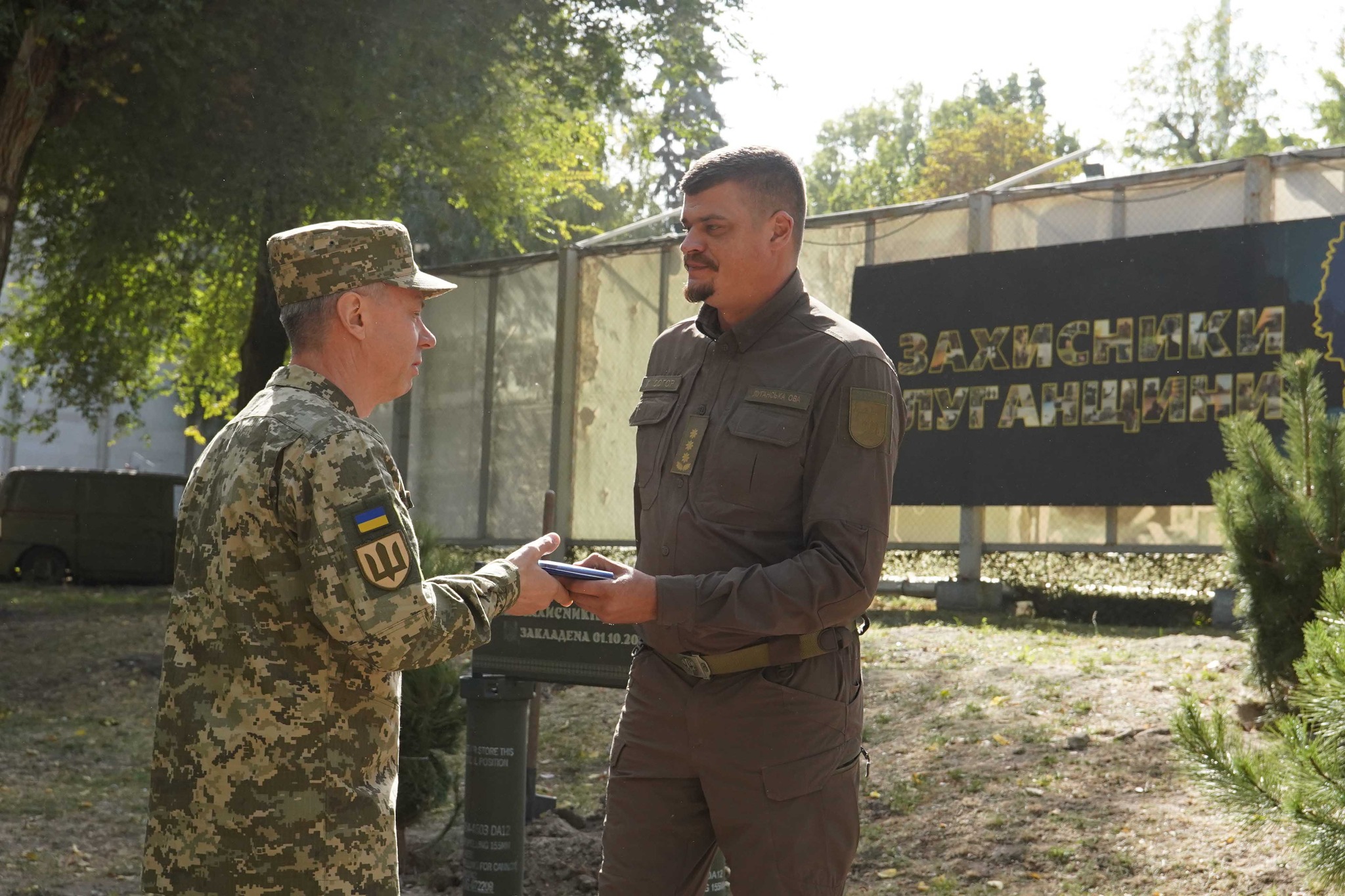 З нагоди свята десятьом військовослужбовцям, що тримають фронт на Куп’янському та Лиманському напрямках, він вручив знак пошани «Захиснику Луганщини».