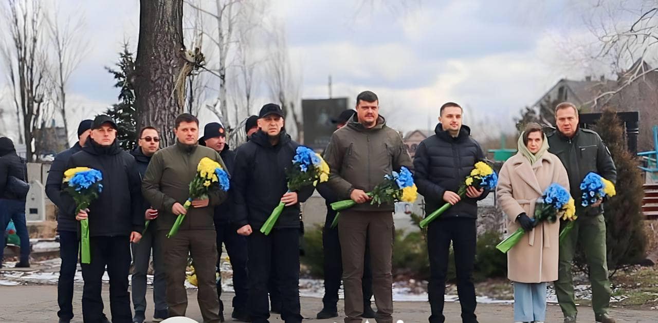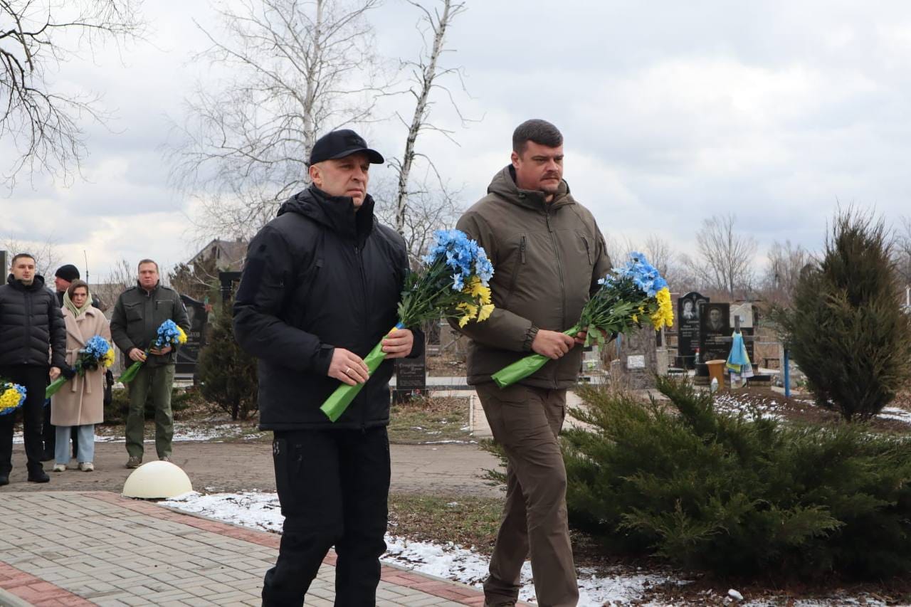 Очільник Луганщини Артем Лисогор спільно з Головою Донецької облдержадміністрації, начальником обласної військової адміністрації Вадимом Філашкіним та представниками правоохоронних структур поклали квіти до пам’ятних знаків.