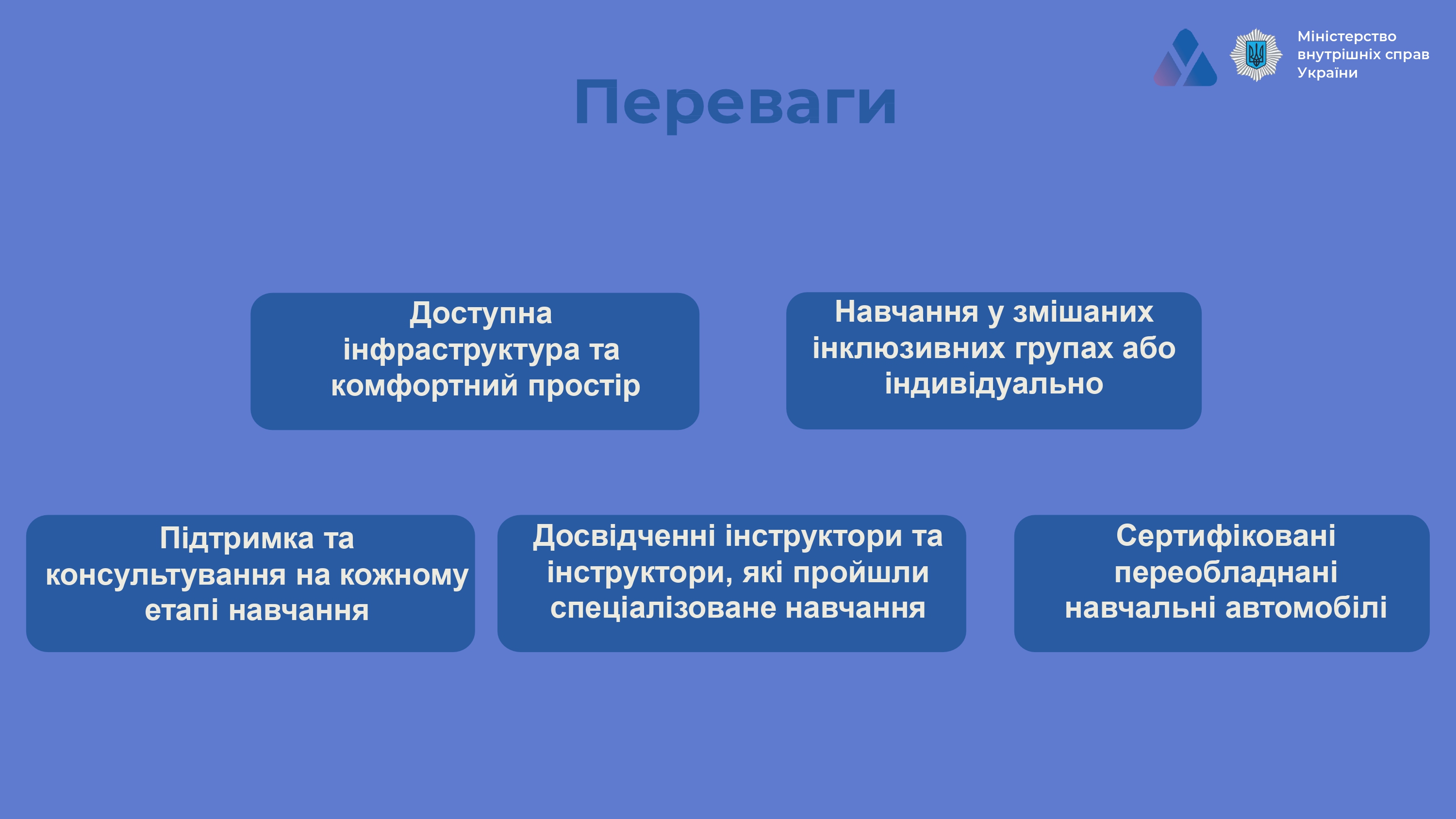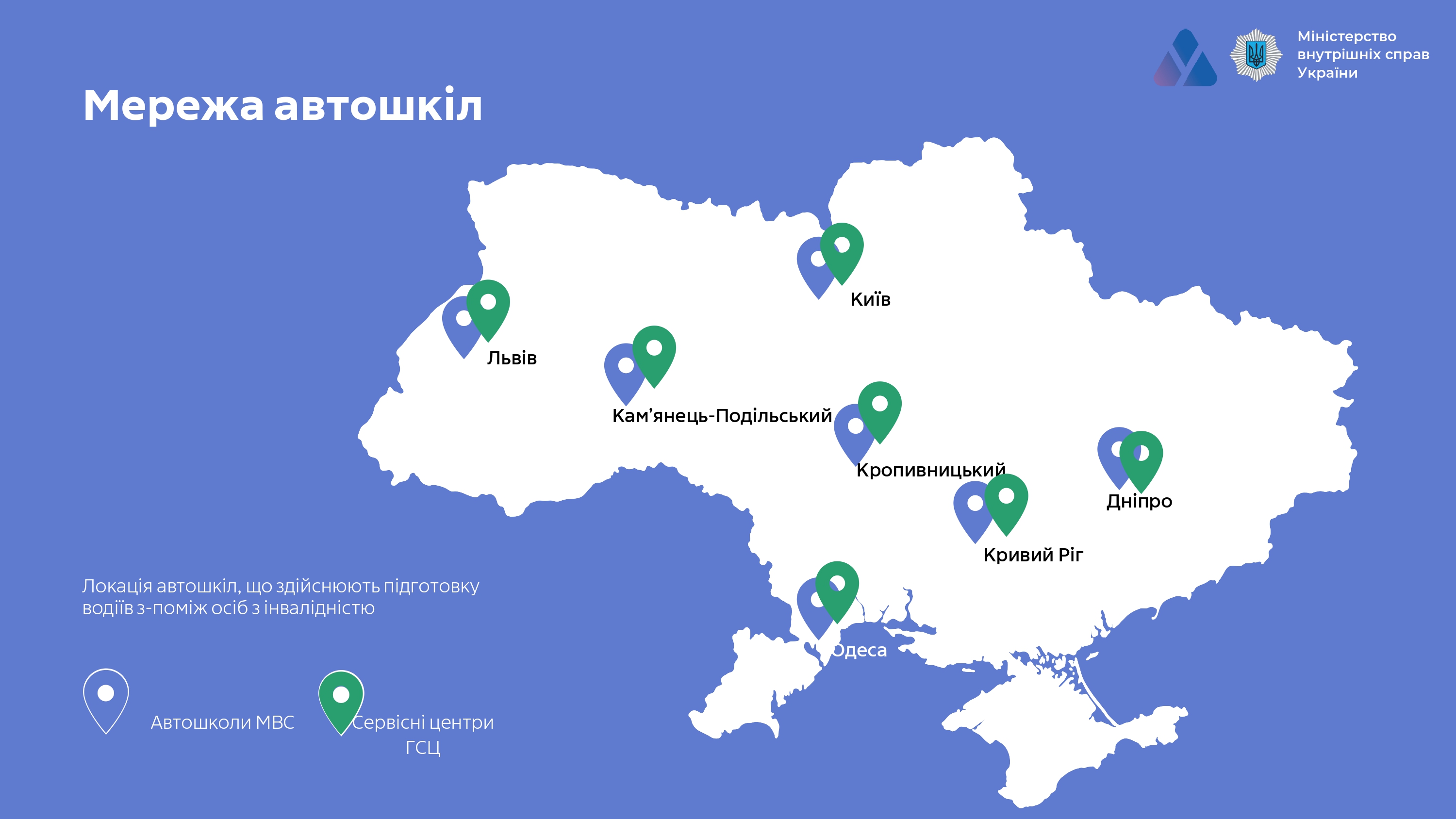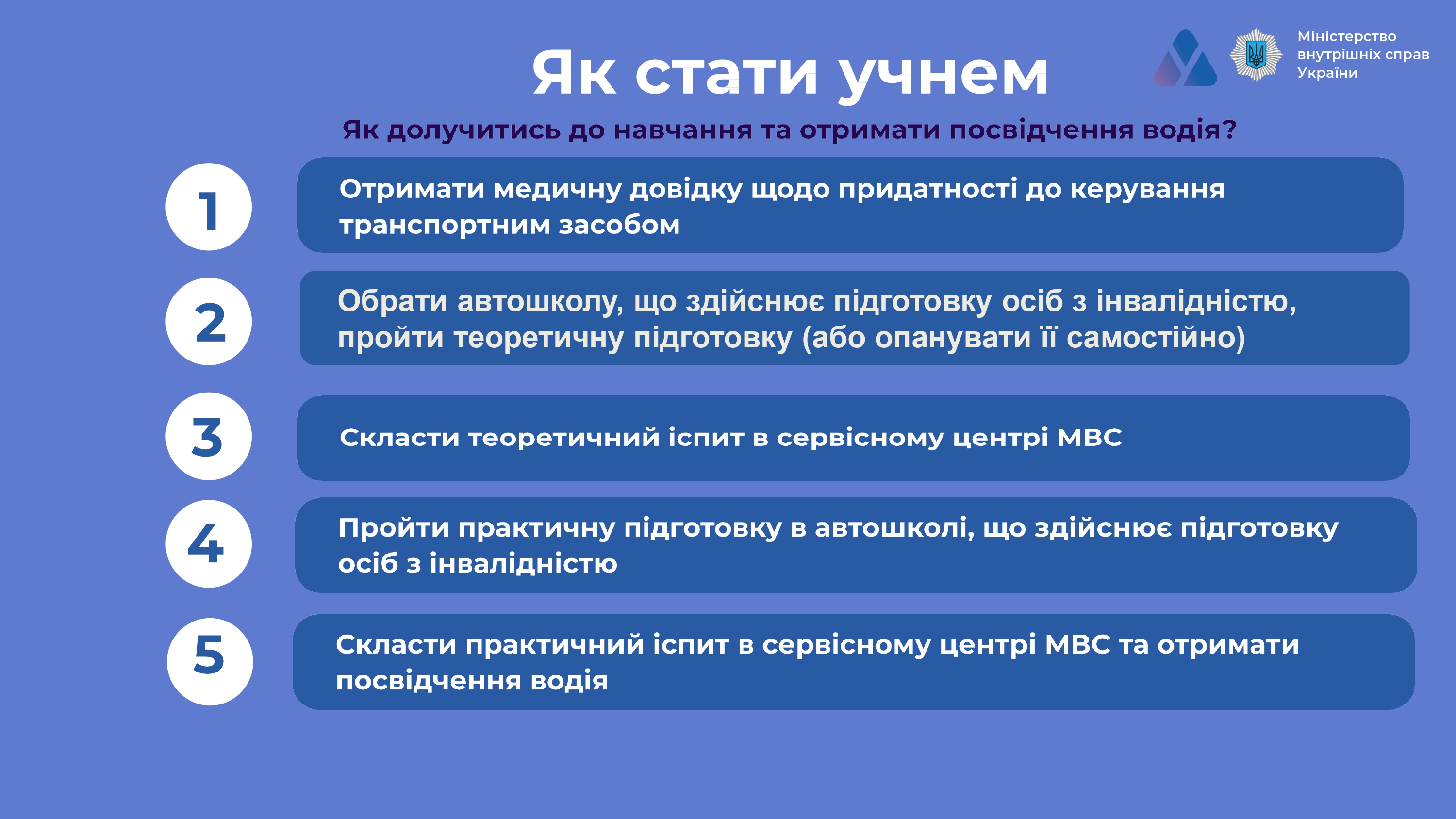 «Автошколи для осіб з інвалідністю» – це флагманський проєкт Міністерства внутрішніх справ України, який реалізується у рамках ініціативи «Без бар’єрів» Першої леді України Олени Зеленської.