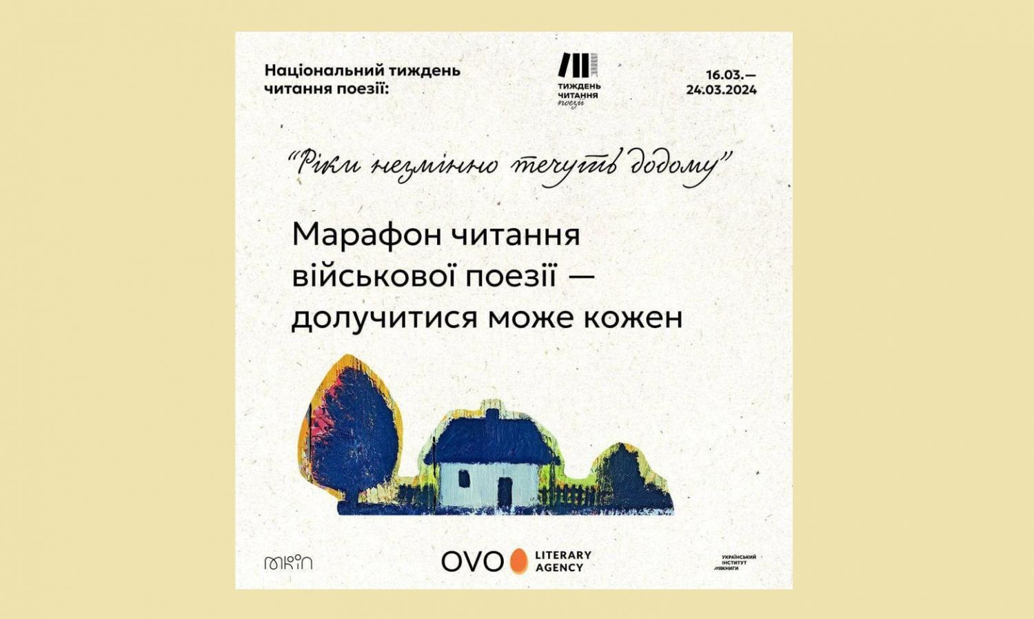 Цьогоріч ]]>Literary Agency OVO ІІ Літературна агенція OVO]]> активно долучається до акції «Національний тиждень читання поезії» від Українського інституту книги та організовує марафон читання військової поезії, який триватиме з 16 до 24 березня. Координаторкою марафону стала українська поетка та культурна менеджерка Tetiana Vlasova.